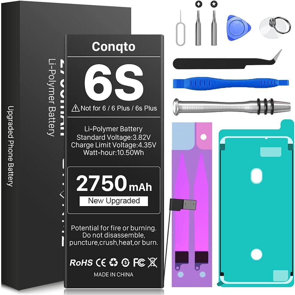 Amazon Com 2750mah Battery For Iphone 6s 2021 New Version Conqto New Upgraded Higher Capacity 0 Cycle Battery Replacement For Iphone 6s Model A1633 A1688 A1700 With Complete Professional Repair Tool Kits Electronics