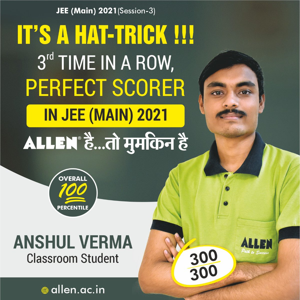 Jee Main 2020 Result Akhil Agrawal Scored 100 Percentile From Allen Jaipur Youtube