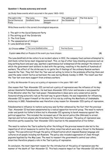 Edexcel Igcse History Paper 1 Sample Answers Teaching Resources